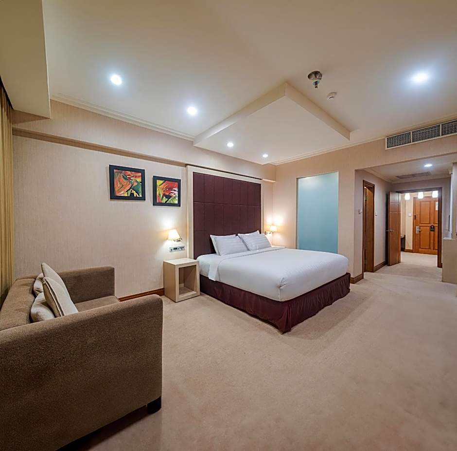 Providing free toiletries, this suite includes a private bathroom with a shower, a hairdryer and slippers. The spacious air-conditioned suite provides a flat-screen TV with cable channels, a wardrobe, an electric kettle, a sofa as well as city views. The unit offers 1 bed.